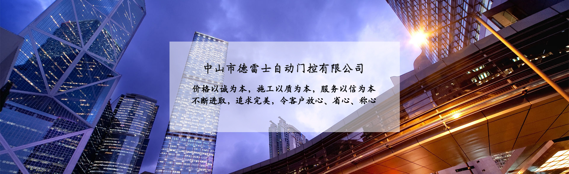 中山市德雷士自動(dòng)門控有限公司代理中山松下自動(dòng)門、中山松下感應(yīng)門、及其旗下品牌松下(Panasonic)自動(dòng)門、旋轉(zhuǎn)門、型材門、松下門禁系統(tǒng)、地彈簧、閉門器等系列產(chǎn)品。 松下Panasonic一直致力于憑借不斷創(chuàng)新的技術(shù)營造為各個(gè)區(qū)域的用戶做出最佳解決方案,在自身領(lǐng)域處于領(lǐng)先地位;松下自動(dòng)門控系統(tǒng)廣泛應(yīng)用于寫字樓、機(jī)關(guān)單位、大型企業(yè)、學(xué)校、醫(yī)院、智能小區(qū)等領(lǐng)域。在用戶心中有良好的口碑及信譽(yù)度。 松下(Panasonic)自動(dòng)門控系統(tǒng)包含:自動(dòng)感應(yīng)門、旋轉(zhuǎn)門、90度平開門、圓弧型門、重疊門、緊急逃生門、醫(yī)用門、氣密門、鋁合金型材門、松下門禁系統(tǒng)、家庭智能鎖、地彈簧、閉門器等系列產(chǎn)品。 德雷士自動(dòng)門控有限公司從事智能門控十余載,精英匯聚;公司具有完善的管理體系,對(duì)每位客戶都進(jìn)行檔案管理,跟蹤服務(wù),定期回訪,終生維修。提供急修12小時(shí)解決,一般維修48小時(shí)解決的服務(wù),完全能解決您的后顧之憂。 公司的質(zhì)量方針 科學(xué)管理確保的工程質(zhì)量 真誠服務(wù)贏得客戶信譽(yù) 持續(xù)創(chuàng)新打造企業(yè) 公司的服務(wù)宗旨 價(jià)格以誠為本,施工以質(zhì)為本,服務(wù)以信為本。 實(shí)實(shí)在在做人,老老實(shí)實(shí)做事,以我們的辛苦換來客戶滿意的微笑,這就是我們的追求! 公司的目標(biāo) ...